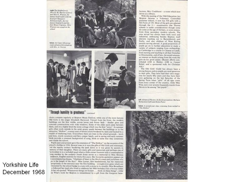 Skipton Girls’ Endowed School 1886: Skipton Girls' High School 2011